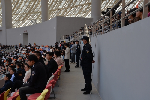 全體執(zhí)勤人員于今早6點到崗,堅持“安全第一”的原則,按照整體布防、文明執(zhí)勤的方式,各安保小組協(xié)同作戰(zhàn)、密切配合、層層把關,圍繞進入口、檢票口、入場口、看臺區(qū)及會場外圍進行執(zhí)勤安保和巡邏防控,建立了*嚴密的安保防線,構筑了*堅固的安保屏障,為廣大群眾營造了一個安全、穩(wěn)定、有序的開幕式環(huán)境。