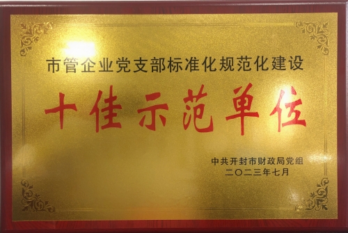 8月10日,在市財政局召開的市管國有企業(yè)黨支部標準化規(guī)范化建設驗收表彰大會上,我公司黨支部榮獲“開封國企黨建十佳示范支部”稱號。